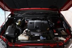 Đáng chú ý nhất là trên Toyota Hilux Revo GR gầm thấp lần này dù chỉ sử dụng hệ dẫn động cầu sau nhưng vẫn được trang bị động cơ trên tương tự phiên bản cao nhất là loại 4 xi-lanh, dung tích 2.8 lít cho công suất 201 mã lực tại 3.400 vòng/phút. Mômen xoắn cực đại 500 Nm từ 1.600 đến 2.400 vòng/phút. Khối động cơ 2.8 đã được Toyota tinh chỉnh tăng đến 24 mã lực và 50Nm lực kéo.