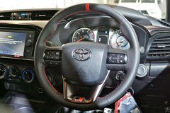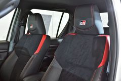 Đến với không gian nội thất, chẳng cần phải bàn cãi gì nữa khi Toyota Hilux Revo GR Sport 2021 sở hữu nội thất cực thể thao với ghế được làm bằng chất liệu da lộn được may với những đường chỉ khâu màu đỏ cực tỉ mỉ và đầy tinh tế. Chìa khoá, vô lăng hay tựa đầu ghế ngồi có logo “GR Sport”. Không dừng lại ở đó, đồng hồ hỗ trợ lái đồ hoạ GR Sport (GR Sport Optitron) và chân ga và bàn đạp chân thể thao.