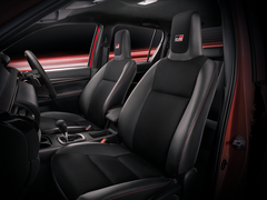 Cảm hứng thể thao tiếp tục được thể hiện rõ bên trong nội thất với chìa khoá, vô lăng và tựa đầu ghế ngồi có logo “GR Sport”, đồng hồ hỗ trợ lái đồ hoạ GR Sport (GR Sport Optitron), bàn đạp phanh và chân ga thể thao. Xe trang bị ghế da kết hợp với da lộn, tạo điểm nhấn với các đường chỉ khâu màu đỏ tương phản.