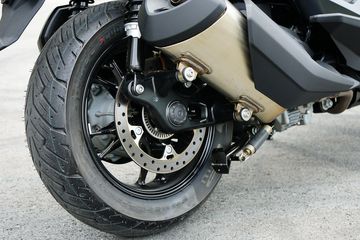 Phanh sau gồm đĩa đơn đường kính 265mm và 1 piston 32mm. Hệ thống cân bằng tự động ASC giúp giám sát tốc độ của hai bánh trước và sau đảm bảo an toàn, chống trượt bánh khi tăng tốc, đặc biệt là khi di chuyển trên đường trơn trượt. Bánh trước sử dụng mâm 15 inch và lốp 120/70, bánh sau sử dụng mâm 14 inch và lốp 150/70. Khối lượng xe là 204kg với C 400 X và 212kg với C 400 GT, chiều cao yên 775mm phù hợp với hầu hết người tiêu dùng.