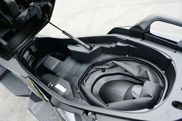 Với thiết kế cốp xe Flexcase độc quyền của BMW Motorrad, bạn có thể linh hoạt mở rộng ngăn chứa đồ xuống dưới để có thêm không gian lưu trữ khi xe không lưu thông trên đường. Ngăn chứa đồ dưới yên đủ cho một mũ bảo hiểm fullface và một mũ bảo hiểm 3/4, chất liệu sợi Kevlar của ngăn chứa có khả năng chống nước, chống bụi bẩn.