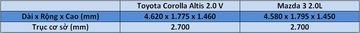 Toyota Altis chỉ gỡ gạc lại được chút ít với khả năng ra lệnh bằng giọng nói và thể tích khoang hành lí 470 lít rộng hơn 414 lít trên Mazda.