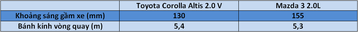Với bánh kính quay vòng và khoảng sáng gầm tốt hơn, lái Mazda 3 đưa con đi học hay đón vợ khi thành phố “chật chội” chắc chắn sẽ dễ xoay xở hơn so với Altis.