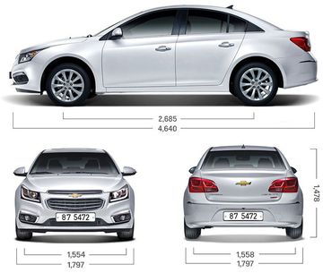 Chevrolet Cruze 2017 có chiều dài x chiềurộng xchiều cao lần lượt là 4.597 x 1.788 x 1.477 mm, với chiều dài cơ sở lên tới 2.685 mm cùng khoảng cách sáng gầm là 160 mm. Một trong những đặc trưng của việc thay kích thước này là để tạo cho chiếc xe có kiểu dáng cứng cáp và mạnh mẽ nhưng không kém phần sang trọng,lịch lãm