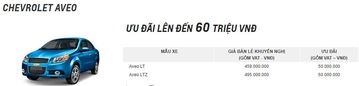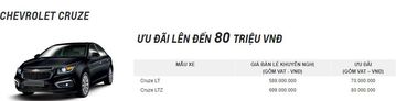 Theo đó, Chevrolet Cruze LT và LTZ có mức giảm lần lượt tương ứng 70 triệu đồng và 80 triệu đồng. Giá bán của 2 phiên bản này hiện tại chỉ còn 519 triệu đồng và 619 triệu đồng.