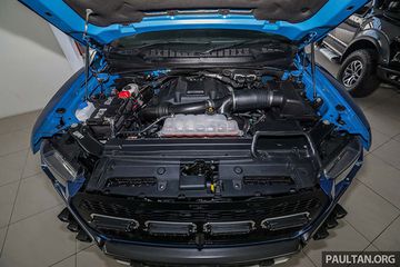 Sơ lược về vận hành, bên dưới nắp capo của F-150 Raptor là động cơ xăng EcoBoost V6 3.5L tăng áp kép sản sinh công suất cực đại 450 mã lực đi cùng moment xoắn 691 Nm. Sức mạnh được truyền xuống các bánh xe qua hộp số tự động 10 cấp và hệ thống dẫn động bốn bánh hai tốc độ (2-speed 4WD). Không dừng lại ở đó, Hamawangsa (đơn vị phân phối F-150 Raptor tại khu vực Đông Nam Á) cũng mang đến gói nâng cấp “Monster Intercooler” (bộ làm mát khí nạp trong hệ thống tăng áp) đưa mức công suất lên 520 mã lực và 827 Nm moment xoắn.