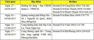 Từ ngày 01/06 đến hết 30/06/2017, Honda Việt Nam phối hợp cùng 18 Đại lý Honda Ô tô trên toàn quốc thực hiện chương trình “Trưng bày và trải nghiệm các mẫu xe Honda Ô tô mới nhất trong tháng 6/2017”.