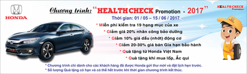 Từ ngày 01/05 đến 15/06/2017, Honda Việt Nam tổ chức Chương trình khuyến mại dịch vụ “Health Check Promotion” với nhiều ưu đãi hấp dẫn.
