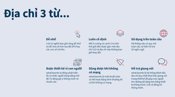 what3words là công nghệ định vị đơn giản và hiệu quả, có thể xác định mọi địa điểm trên toàn cầu và có khả năng hoạt động trong điều kiện không cần kết nối mạng. Hệ thống chia bản đồ thành mạng lưới các ô vuông 10ft x 10ft (3m x 3m) và gắn nhãn mỗi ô vuông tương ứng với tổ hợp đặc biệt 3 từ được hình thành ngẫu nhiên – được gọi là địa chỉ what3words.