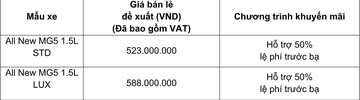 Theo đó, trong tháng 3/2023, quý khách hàng sẽ nhận được ưu đãi hỗ trợ 50% lệ phí trước bạ khi mua dòng sản phẩm MG5.