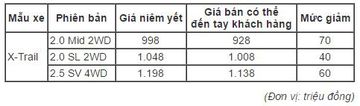Nissan X-Trail giảm nhiều nhất 70 triệu đồng