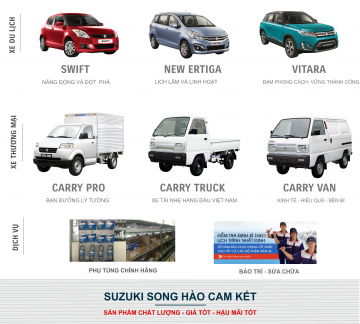 “SẢN PHẨM CHÍNH HÃNG CHẤT LƯỢNG - GIÁ TỐT - HẬU MÃI TỐT” là mục tiêu hoạt động kinh doanh của Công ty chúng tôi nhằm mang đến sự hài lòng của khách hàng khi sử dụng dịch vụ bán hàng và hậu mãi của SUZUKI SONG HÀO - AN GIANG
