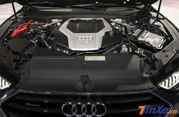 Khối động cơ TFSI 3.0L bên dưới nắp capo của Audi A7 Sportback.