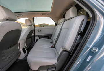 Tính chất “Living space” của IONIQ 5 được thể hiện ở phong cách thiết kế phẳng, với ghế ngồi Futuristic Style đem đến cảm giác mở, thoáng đãng cho cabin khi lái xe. Bên cạnh đó, ghế lái có giá tựa chân đặt dưới giúp lái xe thư giãn tốt hơn trong các hành trình dài mệt mỏi, đồng thời ghế trước cũng có khả năng dịch chuyển tạo nên tư thế ngả thoả mái như khoang sau của một chiếc xe hạng sang cỡ lớn.