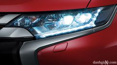 Điểm đáng chú ý nhất về ngoại thất của Outlander 2019 vẫn là phần đầu xe với thiết kế cực kỳ ấn tượng và phong cách. Những đường dập nổi trên nắp ca-pô kết hợp với hai thanh ngang mạ chrome cỡ lớn trên lưới tản nhiệt nối liền cụm đèn chiếu sáng với đồ hoạ sắc nét tạo cảm giác mạnh mẽ và liền lạc. Ngôn ngữ “Dynamic Shield” được hoàn chỉnh nhờ hai thanh chrome ôm sát cụm đèn trước tạo hình chiếc khiên chữ X đầy ấn tượng với logo ngôi sao 3 cánh Mitsubishi đặt ở khu vực trung tâm. Về phần trang bị, hệ thống đèn LED chạy ban ngày là tiêu chuẩn trên tất cả các phiên bản. Khác biệt đến từ hệ thống chiếu sáng chính khi phiên bản tiêu chuẩn 2.0 CVT chỉ sử dụng đèn pha Halogen bóng projector, trong khi hai phiên bản còn lại đều sử dụng công nghệ LED tích hợp hệ thống rửa đèn hiện đại.