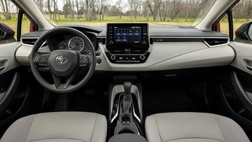Màn hình trung tâm với kích thước 8 inch (7 inch trên bản tiêu chuẩn L) nay được nâng cao lên giúp tạo điểm nhấn nổi bật và hiện đại hơn, đồng thời giúp người lái dễ quan sát hơn mà không rời mắt quá xa khỏi điều kiện giao thông trước mặt. Đồng hồ tốc độ trên Corolla vẫn là dạng analog truyền thống nhưng được kết hợp thêm một màn hình màu TFT 4.2 inch hiển thị các thông số vận hành khác của xe.