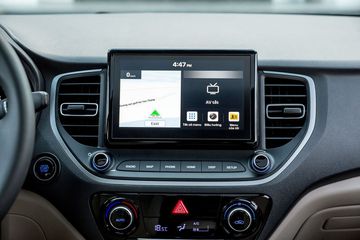 Danh sách tiện nghi trên Hyundai Accent 1.4 AT gồm màn hình cảm ứng 8-inch, hệ thống giải trí AVN kết nối Bluetooth/Radio/Mp4/AUX, tương thích Apple Carplay và đi kèm bản đồ dẫn đường được Hyundai Thành Công phát triển riêng cho thị trường Việt Nam.