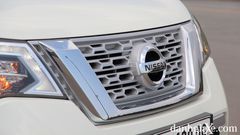 Ở phần đầu xe, lưới tản nhiệt hình thang với họa tiết dạng mũi hổ kết hợp cùng các thanh chrome to bản được bố trí theo mép trong cụm đèn chiếu sáng chính là đặc trưng của các mẫu xe Nissan. Hai đèn chiếu sáng cỡ lớn được vát mép phía trong, trang bị đèn pha cùng dải LED chạy ban ngày dạng mí mắt tạo ánh nhìn đầy mạnh mẽ nhưng không kém phần cuốn hút.