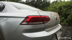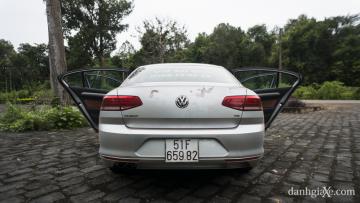 Nếu như thiết kế tổng thể của phần đầu xe khá cứng cáp và gàng, thì đuôi xe Passat lại được trau chuốt nhiều đường cong mềm lại hơn. Phần đèn hậu trông khá hiện đại và dễ nhìn. Thiết kế từng mảng đèn được bố trí hợp lý và dễ nhận diện khi di chuyển phía sau xe vào ban đêm. Ở chi tiết này, Volkswagen cũng cung cấp thêm tùy chọn sử dụng bóng LED, việc này sẽ khiến đuôi xe càng hiện đại và bắt mắt hơn. Ngay phần phân cách nắp hành lý với cảng sau, Volkswagen đã mạnh dạng tạo hình một khoảng lõm mạnh mẽ, kéo dài hết chiều ngang đuôi xe, tạo vẻ thẩm mỹ cao. Đưa ánh nhìn xuống thấp hơn, dễ dàng nhận thấy được cặp ống xả được đặt lệch về phía bên trái. Bộ đôi ống xả này không được ốp các ch tiết mạ chrome bóng bẩy, nên cho cảm giác hơi rẻ tiền và không phù hợp với thiết kế tổng thể của xe.