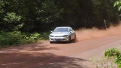 Thử nghiệm khả năng hoạt động của hệ thống ABS, chúng tôi vô hiệu hóa hệ thống cân bằng điện tử ESC và bắt đầu tăng tốc. Khi đã tắt chức năng ESC, chúng tôi biết mình có thể thử thách Passat với việc tăng tốc đột ngột và cảm nhận độ trượt của bánh xe dẫn động. Từ nhận thức này, tôi bắt đầu giữ xe đứng yên bằng chân trái, khẻ tăng tốc độ vòng tua máy lên 1200 vòng/phút. Ngay lập tức, tôi thả chân phanh, 2 bánh trước bắt đầu trượt liên tục trên mặt đường đầy sỏi đá, chiếc xe tăng tốc một cách nhanh nhẹn và bức phá. Đến tốc độ khoảng 60 Km/h, chúng tôi đột ngột đạp mạnh chân phanh, hệ thống ABS ngay lập tức có cơ hội làm việc. Chân phanh liên tục phản ứng nhấp/nhả, thân xe nhẹ nhàng giảm tốc độ mà không hề bị lệch thân xe hay văng đuôi.