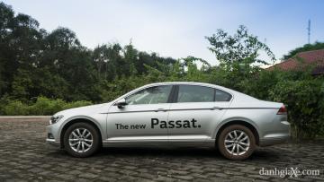 Volkswagen Passat 2016 có chiều dài tổng thể Dài x Rộng x Cao lần lượt là 4.767 x 1.832 x 1.456 mm, được thiết kế trên hệ khung gầm có khoảng cách giữa cầu trước và sau đạt 2.791 mm. Với các kích thước này, Passat ngắn hơn Toyota Camry 58mm và phải cần thêm 168mm để bằng chiều dài của Honda Accord. Xét về chiều dài cơ sở, Toyota Camry được thiết kế ở mức 2775mm, tương tự như Honda Accord. Như vậy, Passat có chiều dài cơ sở nhỉnh hơn 2 mẫu xe đối thủ 16mm. Liếc nhìn theo chiều thân xe, đường gân dập nổi mạnh mẽ có phần hơi phô trương kéo dài từ cửa trước đến cụm đèn hậu, khiến cho thân xe có được chất cứng cáp và khỏe mạnh lôi cuốn. Chưa hết, khoảng lõm dưới mép cửa và cuối đuôi xe như là một phép biến hóa để tạo cho thân xe một cái nhìn gọn gàng và tinh tế. Một điểm đáng chú ý trên thân xe chính là gương chiếu hậu tích hợp chức năng chỉnh hướng và gập điện được tạo hình uyển chuyển như một chiếc lá. Thiết kế này khiến chúng tôi liên tưởng nhiều đến gương chiếu hậu trên mẫu sedan hạng sang Audi A7.