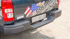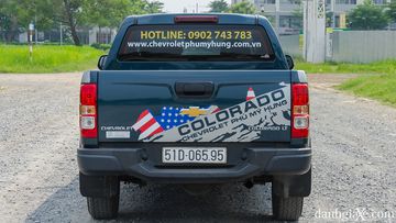 Đuôi xe trên các mẫu bán tải thường không được chú trọng quá nhiều về thiết kế. Bộ phận này Colorado có một chút nét tương đồng so với đối thủ Ford Ranger. Cụm đèn hậu ba tầng ôm sát hai bên nắp chắn thùng vuông vức được Chevrolet 2.5LT 4x4 MT trang bị các bóng Halogen đơn giản, trên các phiên bản cao hơn có thêm các chi tiết LED hiện đại hơn. Dải đèn LED báo phanh bố trí cao sát với cabin, logo hãng đặt tại trung tâm nắp cốp sau, tay nắm mở sơn đen mờ, cản sau kiêm bậc lên xuống tích hợp đèn soi biển số, ốm cản sau màu đen mạnh mẽ.