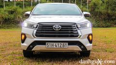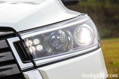 Liền kề là cụm đèn pha halogen phản xạ đa hướng tiêu chuẩn với các tính năng cơ bản nhất. Đáng chú ý, Innova G 2021 cũng được trang bị đèn chiếu gần LED projector tích hợp tính năng tự động bật/tắt. Với việc nâng cấp lên đèn LED, Innova mang đến khả năng quan sát ban đêm tốt hơn hẳn bởi ánh sáng tốt hơn nhiều so với đèn halogen. Phía dưới là đèn sương mù dạng bi-led nhỏ cho ánh sáng trắng hiện đại.