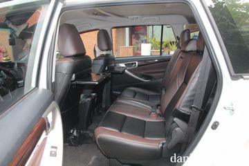 Hàng ghế thứ hai của Toyota Innova 2021 vẫn duy trì sự linh hoạt với khả năng điều chỉnh 4 hướng và có thể gập gọn theo tỉ lệ 60:40 để mở rộng tối đa khoang hành lý. Phiên bản G, Venturer, V có bàn gập tích hợp sau lưng hàng ghế trước và tựa tay trung tâm tích hợp giá để cốc khá tiện dụng cho các hành trình.