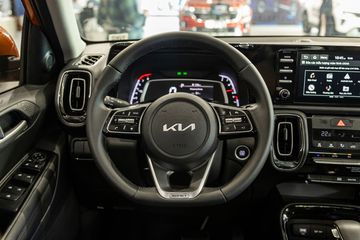 Kia Sonet 2024 giữ nguyên bố cục và cách sắp xếp các chi tiết ở khoang lái của xe cũ. Các chi tiết được bố trí theo cụm gọn gàng và khoa học, kết hợp với gam màu tối chủ đạo mang đến ấn tượng trung tính và hợp mắt.
