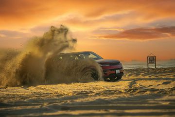 Tuy vậy, việc điều khiển trực tiếp Range Rover Sport 2023 mà không sử dụng hệ thống tự động mới là thú vui thật thụ. Điều khiển chiếc xe nặng 2,3 tấn chạy trên cát này gần như không có cơ hội lún trừ khi bạn cố tình đánh hết lái và nhấn ga để "đào lỗ".