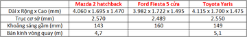 Kích thước trên một số đối thủ cùng phân khúc với Honda Jazz: