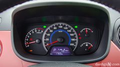 Phối màu đối lập vẫn là điểm nhấn chính trên thiết kế đối xứng của bảng tablo, góp phần làm nền cho vô lăng trợ lực điện với thiết kế 3 chấu khỏe khoắn và cứng cáp. Bên cạnh đó, lớp bọc da mềm cùng các đường chỉ khâu tiệp màu ở góc 2 và 10 giờ cũng giúp cảm giác cầm nắm và điều khiển tay lái trở nên dễ chịu và chắc chắn hơn. Bảng đồng hồ cũng là một điểm đáng khen trên Hyundai Grand i10 với cách thiết kế và bố trí tạo cảm giác rất “sạch”, rất trực quan và dễ quan sát các thông số vận hành khi cần thiết. Bên cạnh cụm kim analog, Hyundai cũng bổ sung một màn hình LCD để thể hiện các thông tin khác như quãng đường đi được, độ tiêu hao nhiên liệu hay chế độ vận hành, đáng chú ý rằng việc tùy chọn hiển thị có thể được thao tác trực tiếp trên nút bấm tích hợp ở vô lăng.
