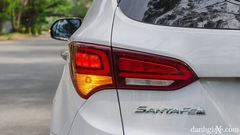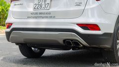Phần đuôi xe SantaFe 2018 nổi bật với cụm đèn hậu to bản sắc xảo, điểm tôi thích nhất là cụm đèn phanh (trái phải, nóc xe sau) đều được trang bị bóng LED cho cái nhìn hiện đại, cụm cản sau cũng được thiết kế hai màu khác biệt, ôm trọn phần đuôi tăng góc thoát sau, giúp leo dốc có độ nghiêng lớn hơn. Cụm ống xả kép mạ chrome khá đẹp mắt.