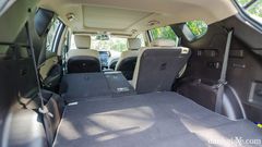 Tuy nhiên hàng ghế thứ ba của Hyundai SantaFe 2018 khá chật chội, đặc biệt là khoảng trần xe do cột C được thiết kế vuốt thấp dần ra sau đuôi để tăng dáng thể thao, nên chỉ phù hợp cho những thành viên nhỏ tuổi hoặc dáng người nhỏ con. Bù lại, hai hàng ghế này có thể chỉnh gập dễ dàng giúp các gia đình tăng dung tích khoang chứa đồ.