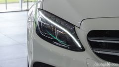 Tiếp đến, cụm đèn pha full LED cùng đèn sương mù, đèn chạy ban ngày DRLs được ôm trọn trong hốc đèn hình thoi sắc nét. Xen kẽ là các đường cong mềm mại, quyến rũ đến “hút hồn”. Hệ thống chiếu sáng này không chỉ “tốt nước sơn” mà còn “tốt gỗ”. Với C250 Exclusive và C300 AMG, Mercedes bổ sung thêm tính năng đánh mắt theo góc lái khi xe vào cua, chức năng Adaptive High Beam Plus tự động nhận diện xe ngược chiều hay cùng chiều phía trước, thu hẹp một phần dải chiếu sáng giúp họ không bị chói mắt, rất “lịch sự”.