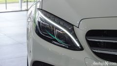 Tiếp đến, cụm đèn pha full LED cùng đèn sương mù, đèn LED chạy ban ngày được ôm trọn trong hốc đèn hình thoi sắc nét. Xen kẽ là các đường cong mềm mại và đầy quyến rũ. Hệ thống chiếu sáng này không chỉ “tốt nước sơn” mà còn “tốt gỗ”. Với C250 Exclusive và C300 AMG, Mercedes cũng bổ sung thêm tính năng đánh mắt theo góc lái khi xe vào cua, chức năng Adaptive High Beam Plus tự động nhận diện xe ngược chiều hay cùng chiều phía trước, thu hẹp một phần dải chiếu sáng giúp họ không bị chói mắt.