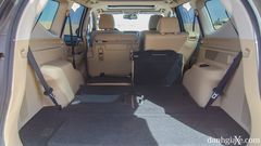 Các hàng ghế đều được bọc da cao cấp, ghế lái chỉnh điện 8 hướng. Hàng ghế giữa gồm 3 tựa đầu có độ nghiêng khá thoải mái. Hàng ghế thứ ba cũng là một điểm đáng chú ý, vì như tôi đã nhận xét phía trên, đuôi xe kiểu dáng lai những chiếc wagon giúp cho phần ghế này có độ dư dã về cả khoảng trần và khoảng duỗi chân cho cả những người có chiều cao trên 1m7. Hai hàng ghế thứ hai và ba đều chỉnh gập phẳng được tăng dung tích khoang chứa đồ.