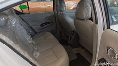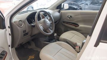 Sở hữu chiều dài cơ sở lên đến 2.590mm, không gian nội thất của Sunny được đánh giá là rộng nhất phân khúc B, hàng ghế trước và sau đều có khoảng duỗi chân hay khoảng trần xe thoải mái. Các ghế ngồi được trang bị chất liệu da (ngoại trừ phiên bản XL trang bị ghế nỉ), ghế lái và ghế phụ chỉnh tay, vô lăng bọc da ba chấu tích hợp nút bấm cho cảm giác cầm nắm tốt và các thao tác điều chỉnh âm lượng, nghe gọi điện thoại tiện lợi hơn. Ngoài ra thì các bộ phận khác trên xe như cụm táp-lô, ốp cửa,… đều trang bị chất liệu nhựa.