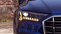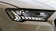 Phần đầu xe tạo ấn tượng đặc biệt với thiết kế lưới tản nhiệt hình bát giác ấn tượng với sáu thanh crom thẳng đứng. Các khe gió ở hai hốc gió bên cũng được thiết kế bắt mắt hơn. Dải đèn LED matrix với thiết kế đường đèn mới nhấn mạnh chiều rộng của xe mỗi khi chạy tia từ trong ra ngoài, dải đèn to dần và hạ nhẹ về phía bên cánh. Cũng giống như đèn hậu, chúng phát tia xi nhan ấn tượng mỗi khi khóa hoặc mở khóa Q7.