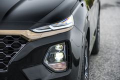 Tương tự các dòng sản phẩm mới của Hyundai, SantaFe mới cũng sở hữu “đôi mắt híp” DRLs (Day Running Lights) nối liền với lưới tản nhiệt cỡ lớn Cascading Grill. Ngay dưới là cụm đèn pha cấu tạo bởi 4 bóng projector và đèn sương mù. Lối bố trí này cũng vừa mới "du nhập" vào Việt Nam qua một số mẫu xe như Hyundai Kona, Mitsubishi Xpander.