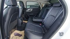 Hàng ghế sau đủ rộng rãi cho cả ba thành viên, khoảng để chân và không gian trần xe là hết sức dư dả ngay với cả khổ người cao tầm 1m80, tuy nhiên vị trí ngồi giữa nên dành cho trẻ em sẽ tốt hơn khi mà hệ dẫn động cùng hốc gió phụ hơi choáng chỗ đôi chút. Bù lại Jaguar đã tinh ý khi trang bị ba mức sưởi ghế cùng một rèm che nắng chỉnh điện ở cửa kính phía sau, mang đến sự riêng tư và ấm cúng đúng nghĩa dành cho hành khách.