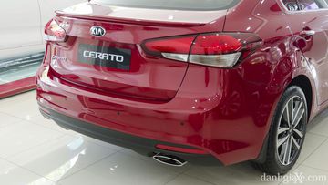 Ngoài ra, điểm thú vị ở phần đuôi xe chính là việc hãng xe Hàn Quốc đã trang bị một cánh hướng gió cho Cerato 2017, giúp xe trông thể thao hơn. Tương tự như phần đầu xe, vị trí phía sau cũng được Kia bố trí 4 cảm biến lùi, đặc biệt còn có camera lùi cũng là trang bị tiêu chuẩn trên cả ba phiên bản. Phía cuối đường ống xả, Cerato 2017 sử dụng ốp trang trí hàng oval khá đẹp, đồng thời cũng để dành ra một vị trí tương tự ở phía đối diện để người dùng thỏa sức trang bị thêm, tạo sự đối xứng hoàn hảo cho đuôi xe.