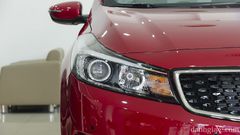 Một điểm đáng chú ý khi nhìn trực diện đầu xe chính là hai khe hướng gió trang trí khá đẹp, nằm liền cạnh với đèn sương mù halogen hình thang trông khá liền lạc. Ngoài ra, có thể nhận thấy các cảm biến thông báo khoảng cách phía trước cũng đã xuất hiện ở đầu xe, tiết lộ chức năng hỗ trợ đỗ xe cho vị trí phía trước, khá hiện đại và tăng tính an toàn. Tuy nhiên, nếu Kia xử lý để các cảm biến sao cho nó đồng màu với thân xe thì sẽ tăng tính thẩm mỹ hơn.
