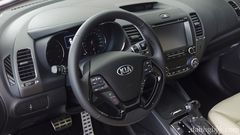 Không gian nội thất được phối trộn màu sắc khá nổi bật. Các hàng ghế và vị trí tựa tay trên cánh cửa sử dụng các lớp bọc giả da màu kem nổi bật. Trong khi đó, các vị trí còn lại được phủ một màu xám/đen quen thuộc. Bảng taplo được giữ nguyên nét thiết kế đặc trưng khi được điêu chỉnh để hướng toàn bộ các nút bấm và màn hình về phía người lái. Mặc dù được trang bị các loại vật liệu có chất lượng tốt và độ hoàn thiện tương đối khá, bảng taplo trên Cerato 2017 vẫn cho cảm giác rối mắt.