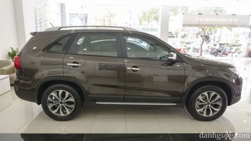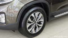 Nhìn từ cạnh bên, thân xe KIA Sorento cho cảm giác trường dài nhờ khoảng cách giữa hai trục bánh lên đến 2,7 mét. Các hốc bánh xe tạo điểm nhấn nhờ mảng dập nổi khỏe mạnh. Xe trang bị bộ mâm đa chấu chế tạo từ hợp kim nhôm có đường kính 18-inches. Đi kèm với đó là bộ lốp xe Continental ContiSport Contact có kích thước 235/60, khá to. Chính giữa 2 bánh chính là nơi KIA lắp đặt bệ bước lên/xuống xe được ốp một mảng kim loại màu bạc khá đẹp.
