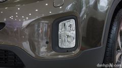 Đối lập với phần đèn chiếu sáng có kích thước nhỏ gọn và trau chuốt, cụm đèn hậu trên Kia Sorento được thiết kế to bản, cách điệu từ chữ “C” và bao quanh bộ đôi đèn báo rẽ và báo lùi. Xe được trang bị bóng LED cho tất cả các vị trí đèn báo dừng, bao gồm cả cụm đèn nằm ở trung tâm cánh lướt gió.