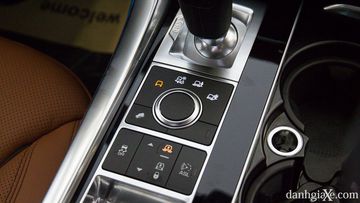 Núm xoay chuyển các chế độ vượt địa hình của Range Rover Sport gồm 4 chế độ: general mode - di chuyển bình thường, Grass/Gravel/Snow - đường trơn như cỏ/sỏi/tuyết, Sand - cát, Mud and Ruts - đường bùn lầy. Phía dưới núm xoay chuyển số là nút nâng hạ gầm xe.