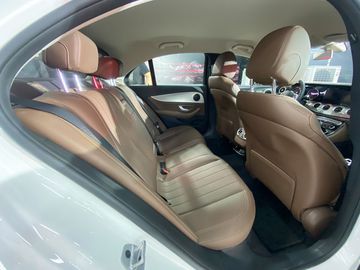 Hàng ghế sau vừa đủ để ba người lớn có thể ngồi cùng nhau, khoảng không trần xe là tốt, tạo được cảm giác thoáng đãng và dễ chịu, lưng ghế có độ nghiêng tốt để hành khách không mệt mỏi khi đi đường dài. Tổng hòa, ghế ngồi trên E 180 là một chi tiết khá đặc biệt, đẹp đẽ, sang trọng và thể thao, đặc biệt là hàng ghế trước.