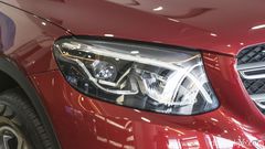 Mercedes-Benz GLC 200 2019 sử dụng đèn pha Full-LED thông thường, không tích hợp công nghệ thích ứng Multibeam. Bộ la-zăng hợp kim nhôm 18-inch 5 chấu, kế thừa từ GLC 250 trước đây, đi kèm lốp dạng thường với bộ vá lốp khẩn cấp.