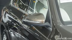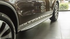Quan sát từ bên cạnh, Mercedes GLC 300 4MATIC Coupe toát lên sự năng động nhờ la-zăng hợp kim đa chấu kích thước 19-inch kết hợp cùng phần ốp viền nhựa cứng quanh vòm bánh và cả đường dập nổi xẻ dọc thân xe cắt ngang qua hai tay nắm cửa. Tăng thêm phần tiện nghi và lịch lãm cho ngoại thất không thể không kể đến khung cửa kính viền chrome bóng bẩy, gương chiếu hậu chỉnh/gập điện và bệ bước chân lên xuống dành cho hành khách.